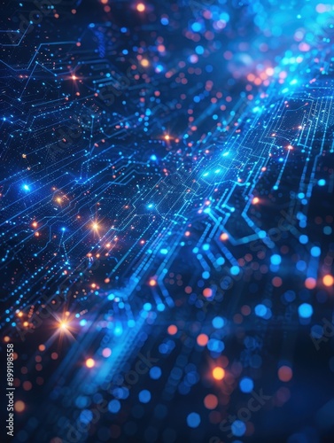 © K silver, Obraz premium Abstract Digital Network Background with Glowing Lights