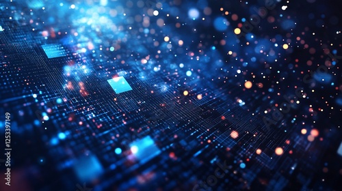 © adha, Obraz premium Abstract digital network background with glowing particles and data streams