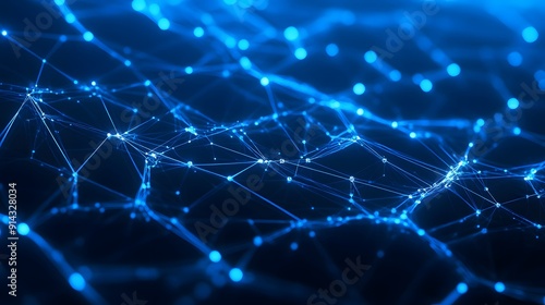 Fototapeta premium Abstract digital network, blue glowing lines and nodes, technology background, data visualization, futuristic connections.