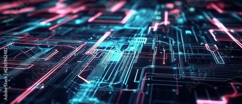 Fototapeta premium Abstract Digital Network Circuit Board with Glowing Pink and Blue Lines