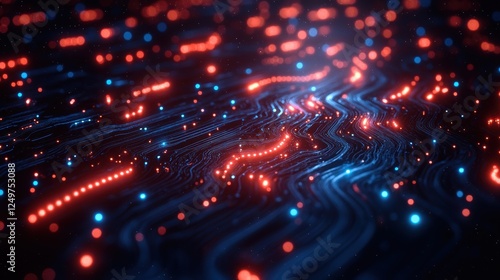 Fototapeta premium Abstract digital network data flow, glowing lines and nodes, technology...