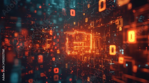 Fototapeta premium Abstract Digital Network Data Flow - Glowing Orange and Blue Lines,...