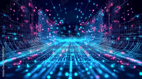 Naklejka premium Abstract Digital Network: Futuristic Technology and Data Flow Visualization.