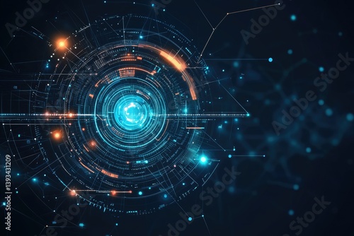 Obraz premium Abstract digital network, glowing lines, nodes, and data streams visualize...