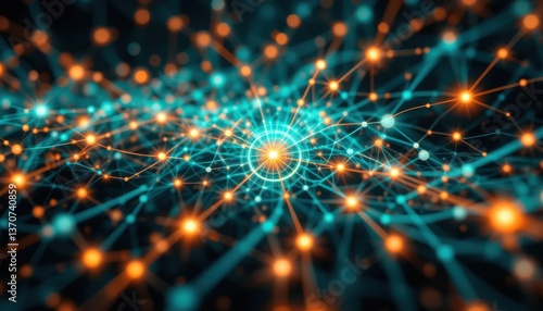 © Chainarong, Fototapeta premium Abstract Digital Network Glowing Orange and Teal Connections