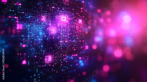Obraz premium Abstract Digital Network, Pink and Blue Lights