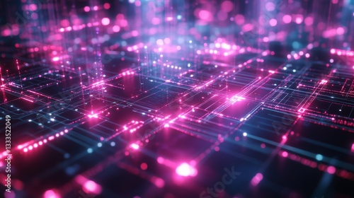 Fototapeta premium Abstract Digital Network Showing Pink And Blue Light Patterns