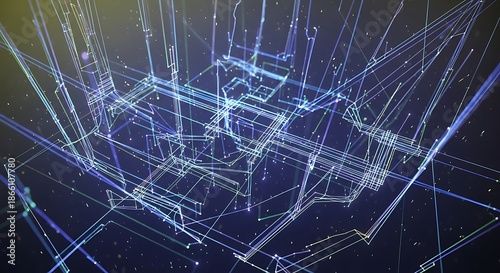 © Julian, Obraz premium Abstract digital network structure with lines and nodes on a dark background