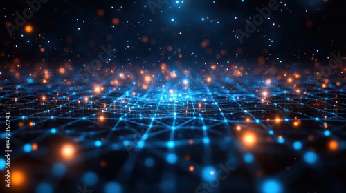 © rasya, Obraz premium Abstract digital network technology background with glowing particles