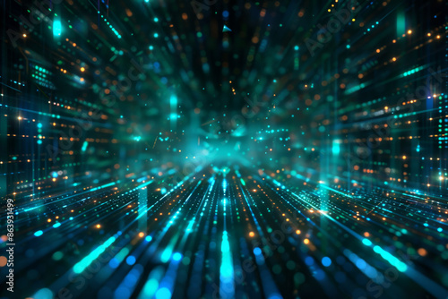 © Rangga Bimantara, Fototapeta premium Abstract Digital Network with Bright Lines and Lights
