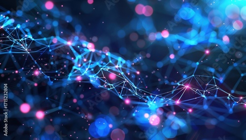Fototapeta premium Abstract Digital Network with Glowing Blue Lines and Connected Nodes,...