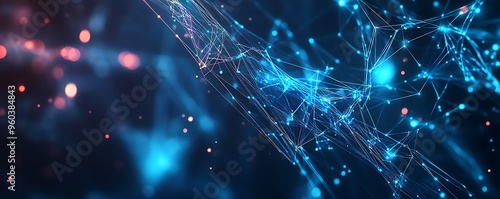 © Ibnu, Fototapeta premium Abstract Digital Network with Glowing Blue Lines and Nodes