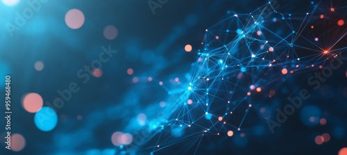 © adri, Fototapeta premium Abstract digital network with glowing dots and lines on blue background.