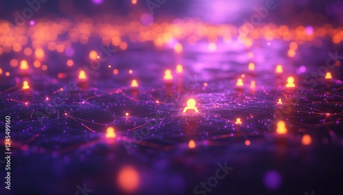 Obraz premium Abstract digital network with glowing human figures representing connections,...
