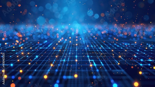 © hanafi 99d, Obraz premium Abstract Digital Network with Glowing Lights