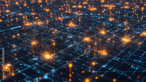 © fledermausstudio, Obraz premium Abstract Digital Network with Glowing Lights Futuristic Technology Background