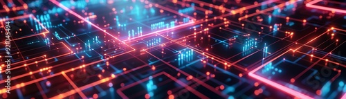 © NewMaii, Fototapeta premium Abstract digital network with glowing lines and data.