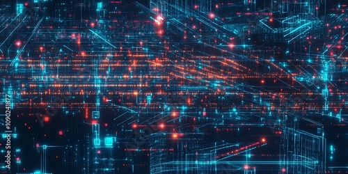 © Ruqqq, Obraz premium Abstract digital network with glowing lines and dots.