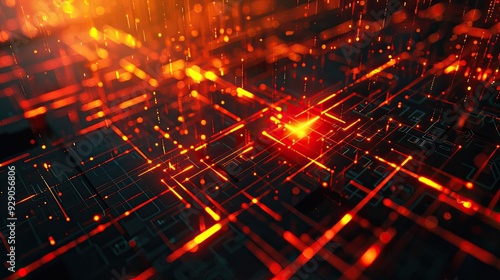 © Royin, Obraz premium Abstract Digital Network with Glowing Lines and Dots