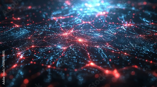 © BirD, Obraz premium Abstract digital network with glowing nodes.