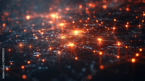Fototapeta premium Abstract digital network with glowing nodes and lines.