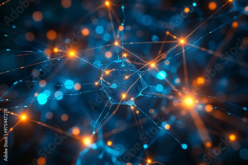 Fototapeta premium Abstract digital network with glowing nodes and lines. Concept for...