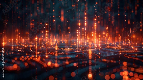 © Arieswanto, Obraz premium Abstract Digital Network with Glowing Red Lights