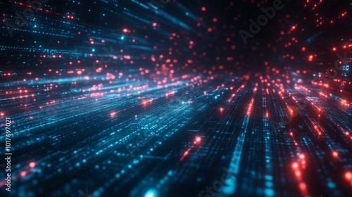 Naklejka premium Abstract Digital Network with Red and Blue Glowing Lines