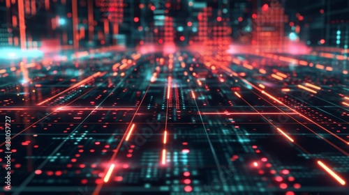Obraz premium Abstract Digital Network with Red and Blue Lights.