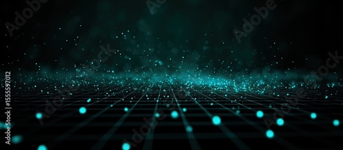 © RatWats, Fototapeta premium Abstract digital network with teal particles