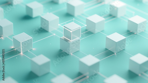 Obraz premium Abstract Digital Network with White Cubes and Connections