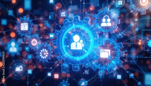 © Artha, Obraz premium Abstract digital numbers flow in a technological cyberspace