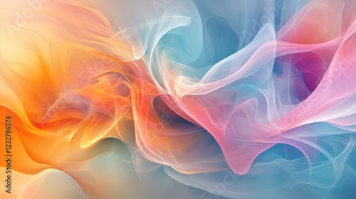 Obraz premium abstract digital painting, color gradient, soft shapes, swirling smoke, pinks, oranges, and blues, fluid forms.