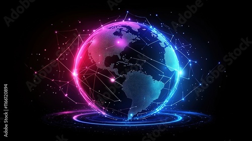 Obraz premium Abstract digital planet Earth with glowing connections and global network...