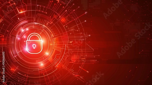 Obraz premium Abstract digital security system with glowing light effect and red background