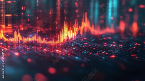Fototapeta premium Abstract digital soundwave visualization with vibrant colors and dynamic...
