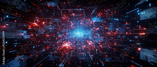 © artzone, Fototapeta premium Abstract Digital Space Background with Red and Blue Glowing Particles