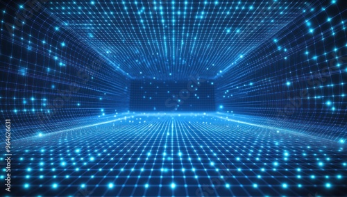 © diwa, Obraz premium Abstract Digital Space with Glowing Grid