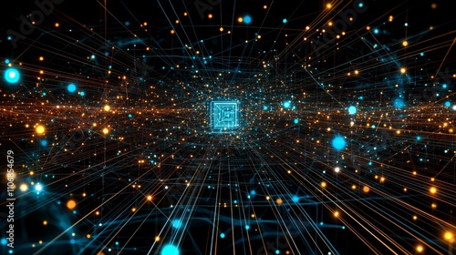 © Artajar, Naklejka premium Abstract digital space with glowing lights and lines