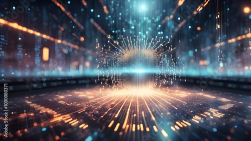 Fototapeta premium Abstract digital sphere with bright lights and streaks in a futuristic setting.