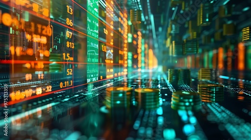 © theerachai, Obraz premium Abstract Digital Stock Market Data Visualization