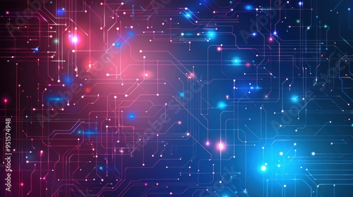© aref, Obraz premium Abstract Digital Technology Background Featuring Futuristic Circuitry in Vibrant Blue and Pink Tones