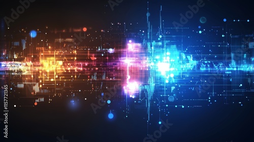 Fototapeta premium Abstract digital technology background. Futuristic glowing lines and particles.