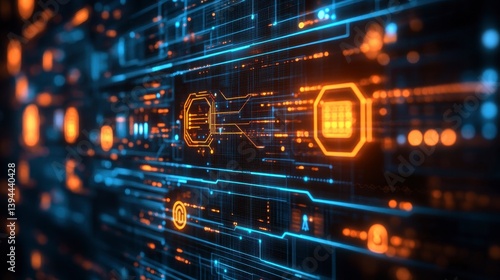 © aun, Obraz premium Abstract Digital Technology Background with Blue and Orange Elements