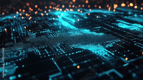 © TopMedia, Obraz premium Abstract Digital Technology Background with Blue Lights and Patterns