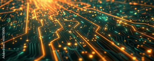 © jakapong, Fototapeta premium Abstract digital technology background with glowing circuits and lines.