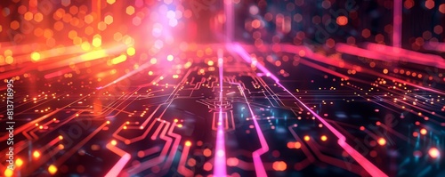 Obraz premium Abstract digital technology background with glowing circuits and lines.