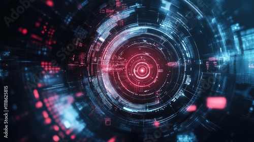Fototapeta premium Abstract digital technology background with glowing red and blue circles and...