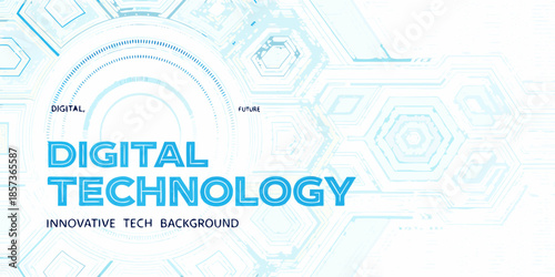 © Sunil123, Obraz premium Abstract digital technology background with hexagonal patterns and text overlay