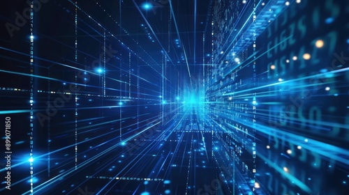 © ellisa_studio, Naklejka premium Abstract Digital Technology Background with Light Streaks and Data